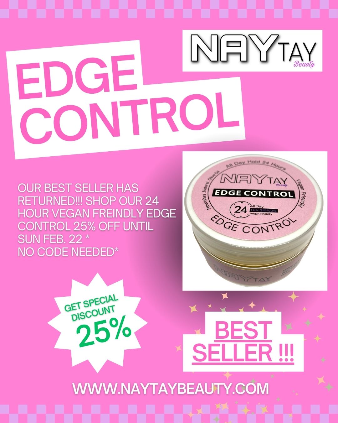 All Natural, Vegan Friendly, strong hold, non sticky, and leaves behind no white residue ‼️ NAY TAY Beauty’s Edge Control is here! Get them baby hairs laid and nourished at the same time!